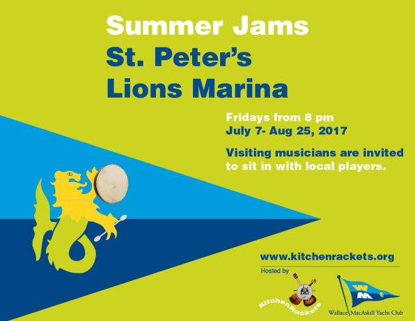 So, if you are at or near the Lions Marina in St. Peter's on a Friday night this summer, please come out to our acoustic jam session. All players are invited to join in, and listeners are welcome.